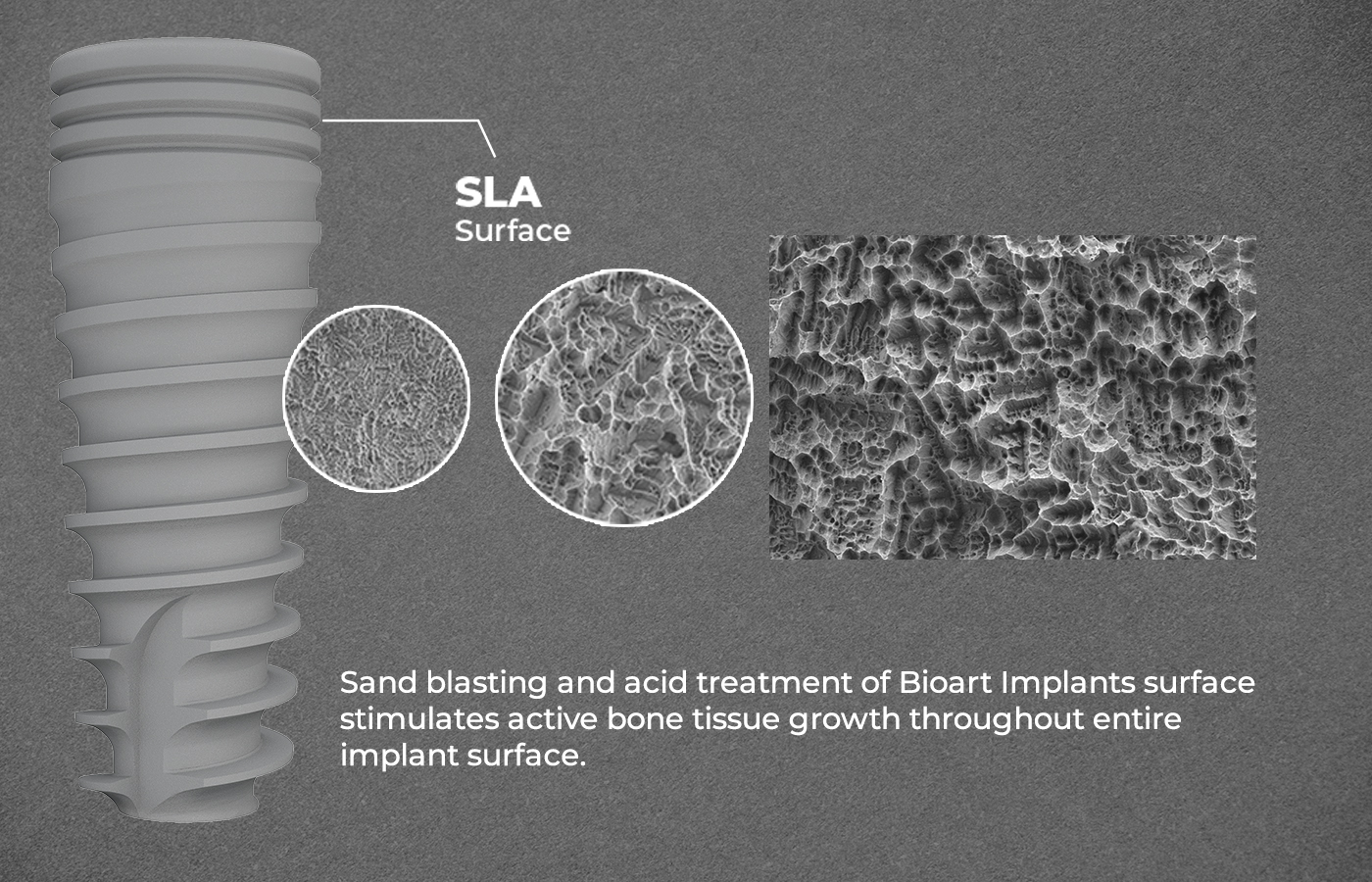 Dünya standartlarında SLA yüzey yapısına sahip Bioart İmplant Sistemleri ile uzun ömürlü ve biyouyumlu sonuçlar.